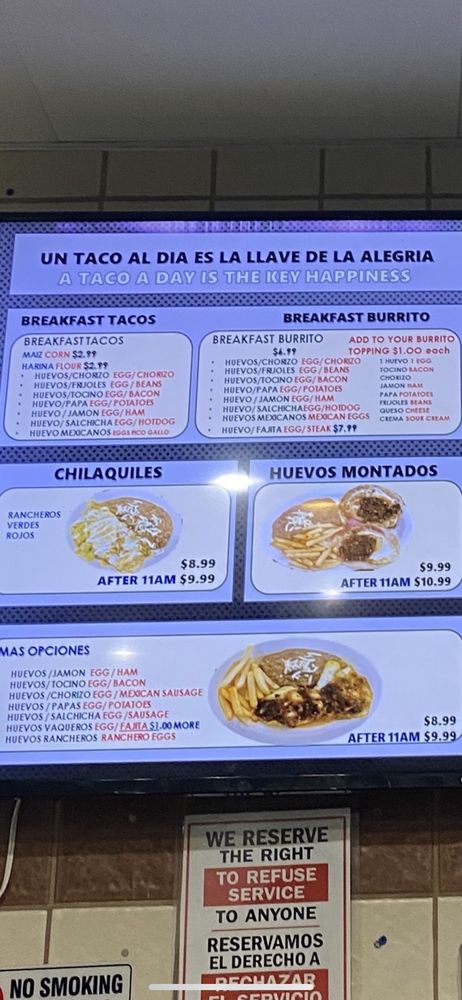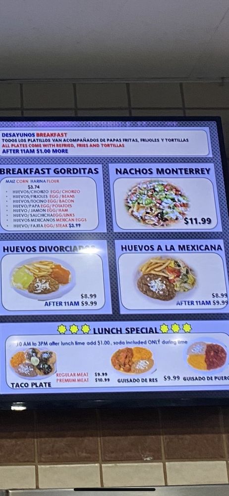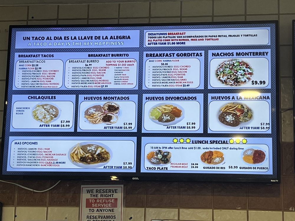 Introducing the menu at Pancho Tacos, located in Arlington, TX, offers a variety of Mexican delights for every mealtime. From classic appetizers like Guacamole and Chips, Bean Dip and Chips, to flavorful Mexican favorites such as Enchiladas, Sope, and Quesadilla, the menu is sure to satisfy all cravings. But the real star of the show are the tacos, with options like Al Pastor, Fajita, Pollo, and unique choices like Buche, Barbacoa, and Chicharron. With a range of vegetarian options and a casual setting perfect for groups and families, Pancho Tacos caters to all tastes and preferences. The dishes here are bursting with authentic flavors and will transport you straight to the heart of Mexico with every bite. Don't miss out on this flavorful experience!