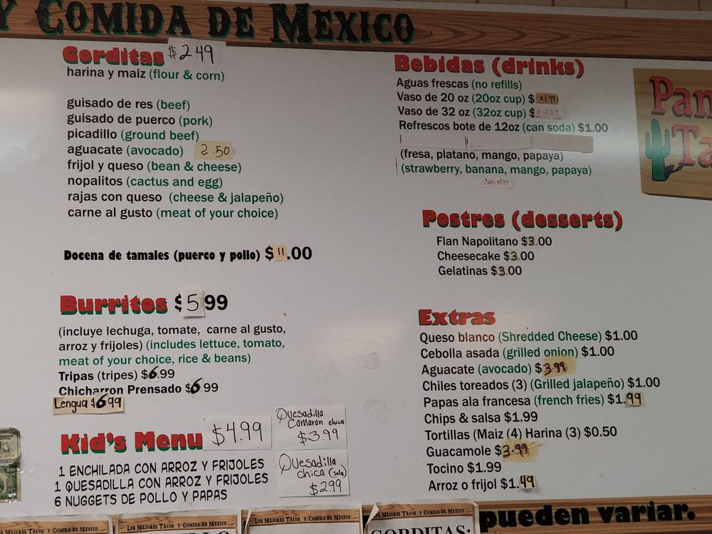 Pancho Tacos Menu (2025 Update)